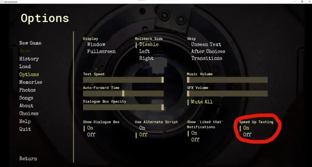 It was this perfect blend of guidance and cheekiness that made me laugh out loud. These moments aren’t just gags; they’re cleverly integrated into the A Shot in the Dark visual novel mechanics. The game often “helps” by labeling options with their potential outcomes or tones, but it does so with a wink, making you feel like you’re in on the joke with the developers.