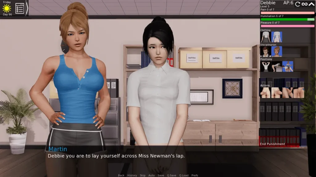 - Ruth’s Conditions: This is a cornerstone of the discipline mechanics in the Headmaster game. To perform a spanking, which is a major source of Discipline points and grade boosts for a specific girl, you must first get Ruth, the stern assistant, to agree. The typical Ruth conditions in Headmaster involve catching a girl violating a specific, active school rule. You can’t just make up reasons; you need proof. This means strategically implementing a rule (like “No Talking in Halls”) and then personally witnessing a girl break it.
